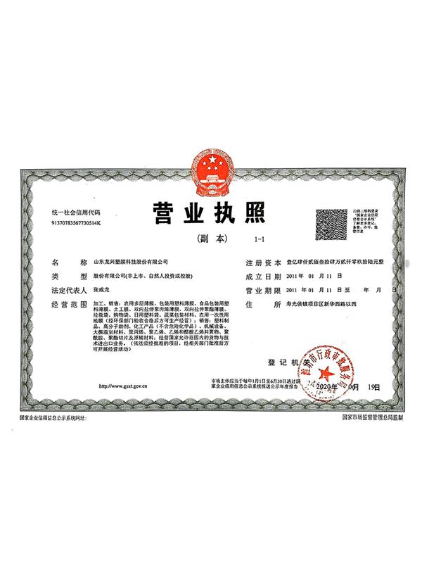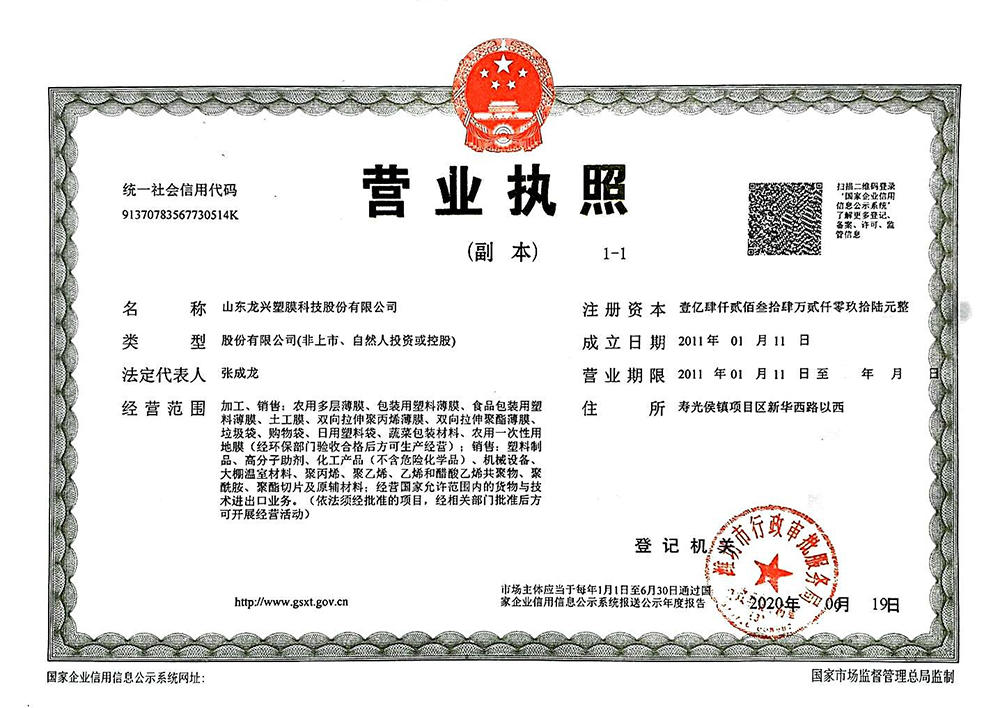 山東龍興塑膜科技股份有限公司前身為山東壽光龍興農(nóng)膜有限公司組建于2011年,2018年10月重組,目前是壽光市國(guó)有控股公司、高新技術(shù)企業(yè),是專業(yè)生產(chǎn)高檔農(nóng)用薄膜、工業(yè)用薄膜的企業(yè),是一家以產(chǎn)品制造為主,集科研開(kāi)發(fā)、產(chǎn)品設(shè)計(jì)、技術(shù)服務(wù)于一體的綜合性企業(yè)。公司現(xiàn)有職工228人,各類工程技術(shù)人員97人,管理人員20余人,注冊(cè)資金14234.2096萬(wàn)元,總資產(chǎn)102314萬(wàn)元,目前是壽光市國(guó)有控股公司、高新技術(shù)企業(yè)。公司是中國(guó)塑料加工工業(yè)協(xié)會(huì)農(nóng)膜專業(yè)委員會(huì)會(huì)員單位,中國(guó)復(fù)合材料工業(yè)協(xié)會(huì)會(huì)員單位,中國(guó)塑料加工工業(yè)協(xié)會(huì)雙向拉伸聚酯薄膜專業(yè)委員會(huì)會(huì)員單位...